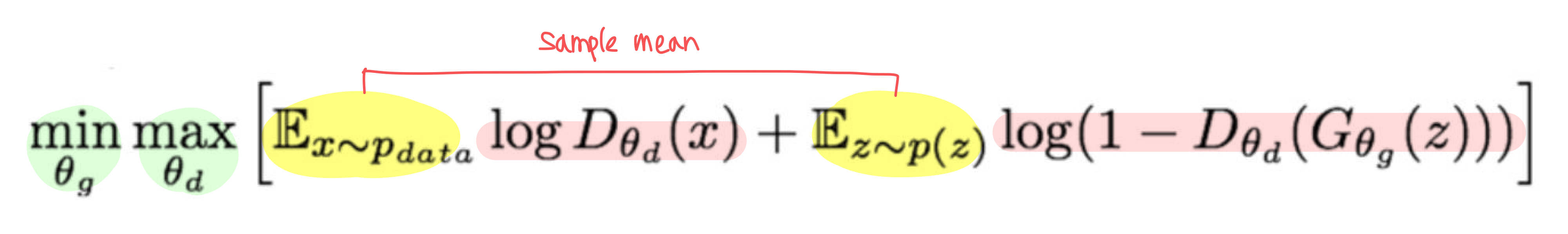 임의의 실수 쌍 $(a,b)∈R2∖{(0,0)}$에 대해 아래 함수 $f(y)=alogy+blog(1−y)$ 는 y∈[0,1] 범위에서 $y = a/a+b$ 일 때 최대가 된다는 것은 잘 알려진 사실이다. 즉 생성기 G를 고정했을 때, 판별기 D를 최적화하면 다음 형태의 최적 판별기를 얻는다: