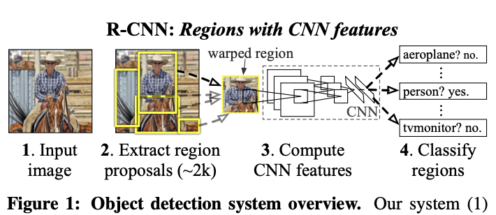 (1) bottom-up region proposal에 고용량 CNN을 적용해 강력한 지역 특징을 얻는 방식이 기존 HOG 기반 탐지기를 크게 능가