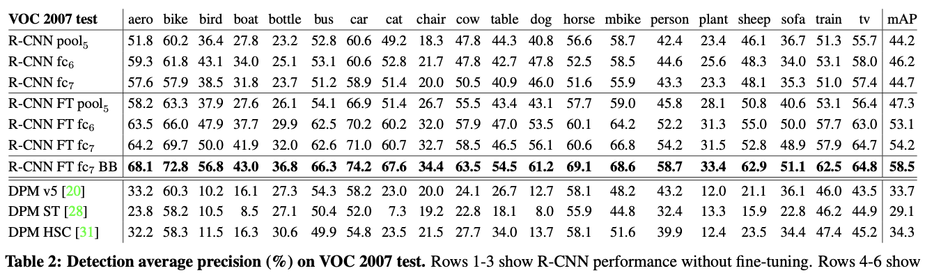 이 두 가지 설계를 통해 R-CNN은 이전 HOG 기반 탐지기(DPM 등)보다 현저히 높은 detection 성능을 달성하며, OverFeat 같은 최신 sliding-window CNN 탐지기보다도 훨씬 우수한 결과를 보여준다. 논문은 이러한 결과로 CNN이 객체 검출에서도 강력한 표현력을 가진다는 것을 처음으로 입증한다.
