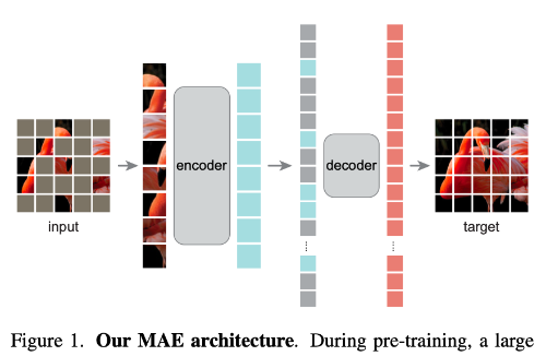 이 논문은 Masked Autoencoder(MAE)가 컴퓨터 비전에서 확장성이 높은 self-supervised 학습 방법임을 보여준다. MAE의 기본 아이디어는 입력 이미지의 일부 패치를 무작위로 가리고, 가려진 픽셀을 복원하는 방식으로 표현을 학습하는 것이다.